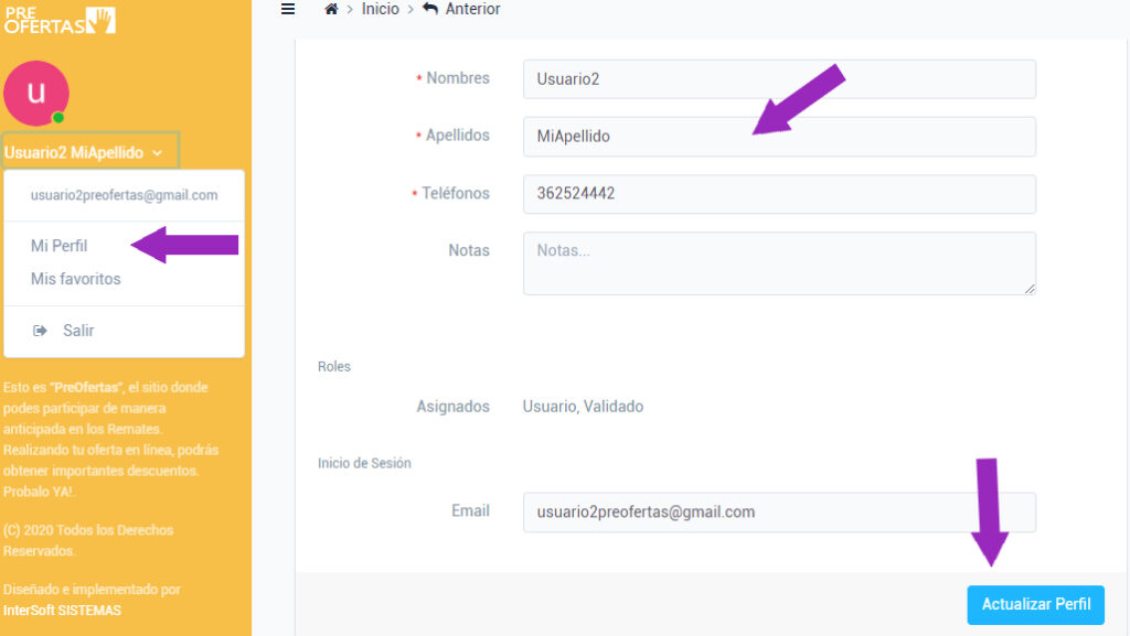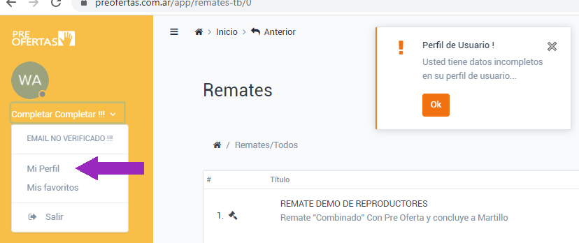 Y que completes los datos de tu perfil, que son muy importantes para poder contactarte y operar en el sitio.